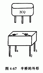 1.全桥 全桥是由4只整流二极管按桥式全波整流电路的形式连接并封装为一体构成的,图4-65是其电路图形符号与内部电路,图4-66是其外形。