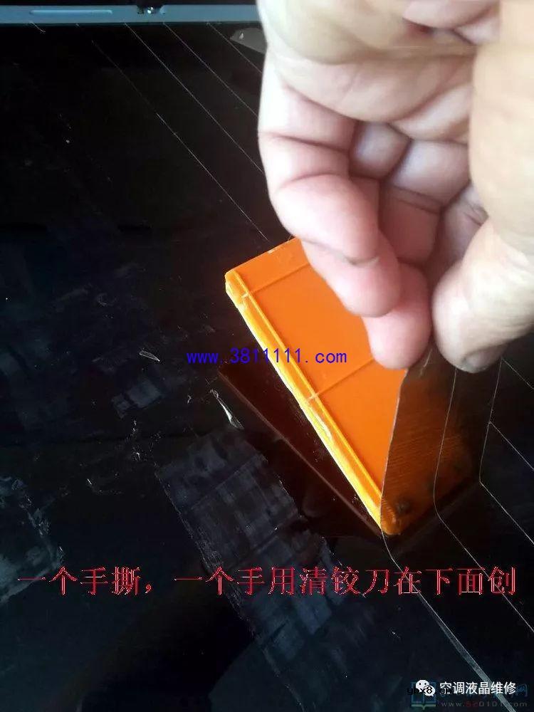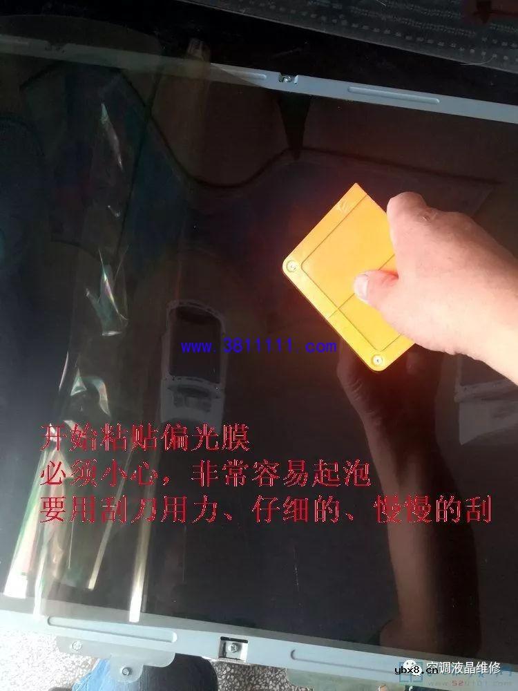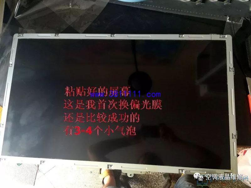 康佳32寸液晶屏偏光膜更换过程(图)康佳32寸液晶屏偏光膜更换过程(图)最近接修一台32寸康佳电视,偏光膜损坏。说真的,第一次更换,心里没底,去网上收看了几个资料,去马云家购买了偏光膜,在偏光膜还没有到来之前先准备工具,工具都有:壁纸刀一个,刮板一个(可找一块边缘平整的塑料板),清胶刀一个(用塑料片夹刮胡刀片),擦胶用的汽油或者酒精,擦胶布一块(我用的擦车的鸡皮)。今天刚好偏光膜到了,马上进行作业,前前后后一共用去了将近4个小时,最后自认为换的比较成功,给大家发上来共同探讨,指出不妥之处,相互提高技艺。