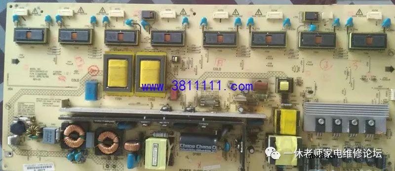康佳LC42FS81DC液晶电视开机困难的通病检修方法 此类故障在同机型维修中已经连续碰到两例,应该属于该系列康佳电视的通病。接下来讲述维修的具体经过,前一段时间接修一台康佳LC42FS81DC液晶电视,开机困难,用户描述开始4-5分钟能开机,开机后一切正常,现在要10-20分钟,甚至半天不开机,红绿灯频闪。开机检测,测5VSB不稳定,在2-4伏间波动,主板无开机信号返回;断开主板供电,5VSB恢复正常,测量主板5VSB输入电阻,无短路;电源板模拟开机,5VSB波动,电源故障无疑,仔细观察电源板。
