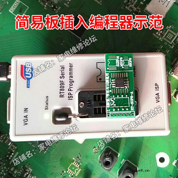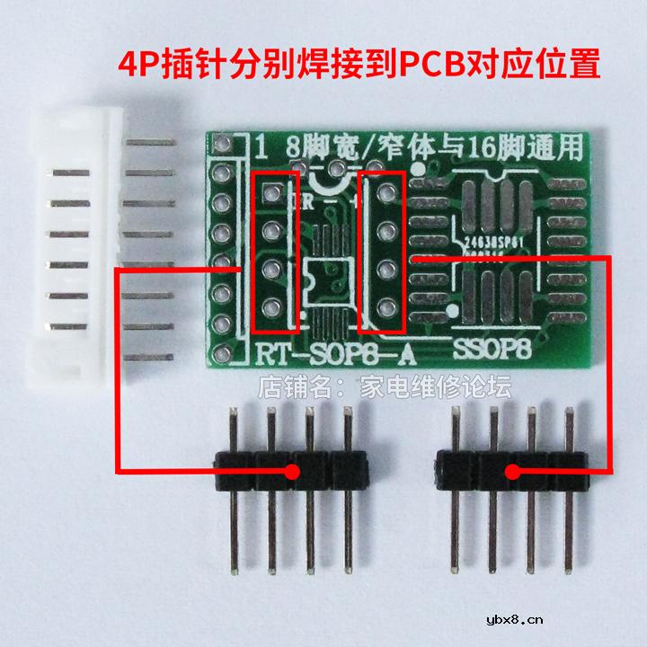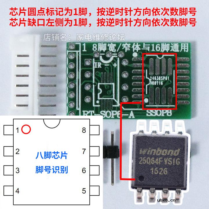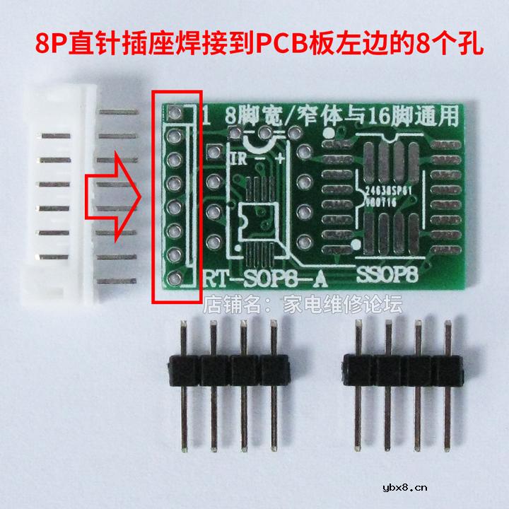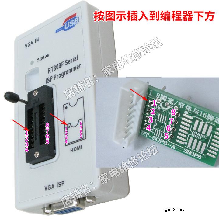 RT809F/RT809H系列编程器SOP贴片简易刷写板安装示意图解,烧录座摆放芯片图解。