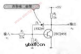 用作自动音频限幅二极管 如图是由限幅二极管D和电阻R2组成的自动音频限幅器原理图。当无信号输入时,有小电流I自地向流经R1,R2,R3,R4到电源负端。此电流在电阻R上产生约