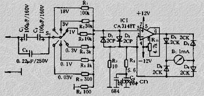 简易毫伏表的制作 这个毫伏表的带宽为20HZ-2MHX,量程为200uV-60V,输入阻抗高达1MR,能对AF放大器,麦克风或拾音器的信号进行直接测量。