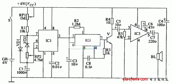 仿声原理电子驱鼠器电路