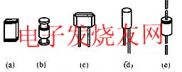 图中给出了传感器的各种外形图。 其中(a)和(b)为无引线的贴片封装外形,(c)、(d)、(e)为有引线的封装外形。 传感器是利用二极管正向电压随温度变化的特性并经过