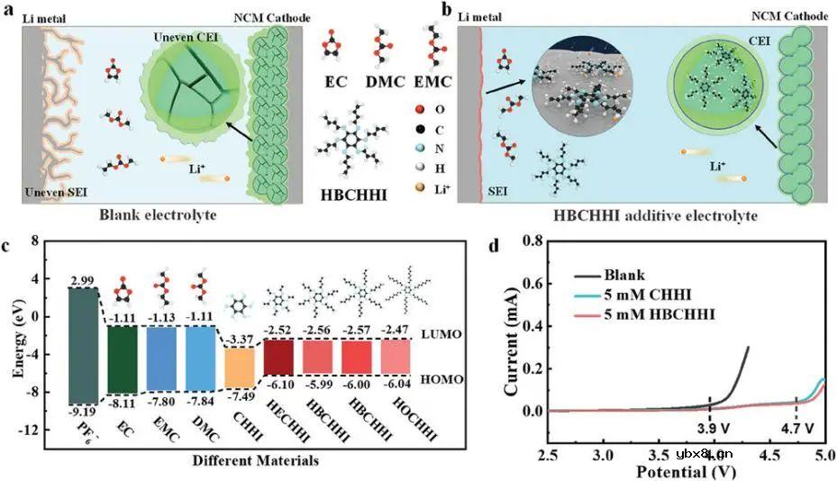 4.7V高稳定锂离子电池用HBCHHI添加剂辅助商用酯电解液