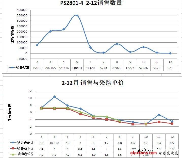 4通道光耦 PS2801-4(NEC2801-4), 2011年价格行情指数