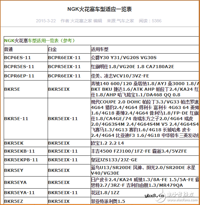 火花塞型号对照表_汽车火花塞型号一览表如何保养火花塞?