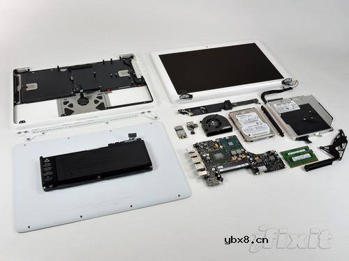 苹果13.3英寸MacBook拆解详细图 新版本MacBook笔记本外观 在放出了13.3英寸一体成型白色外观版MacBook笔记本实机后,今天我们看到的是拆解。整体上看,新版本MacBook笔记本的内部构造和MacBook Pro以及Air越来